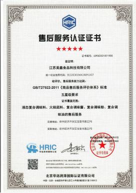公司依據國家《中華人民共和國產品質量法》及《中華人民共和國消費者權益保護法》,明確江蘇美鑫食品科技有限公司產品的售后服務承諾,依據相關國家法律法規建立了售后服務制度,并制定相關的程序文件進行規范。多年以來我們的產品從未發生過因質量或服務的產品召回情況。