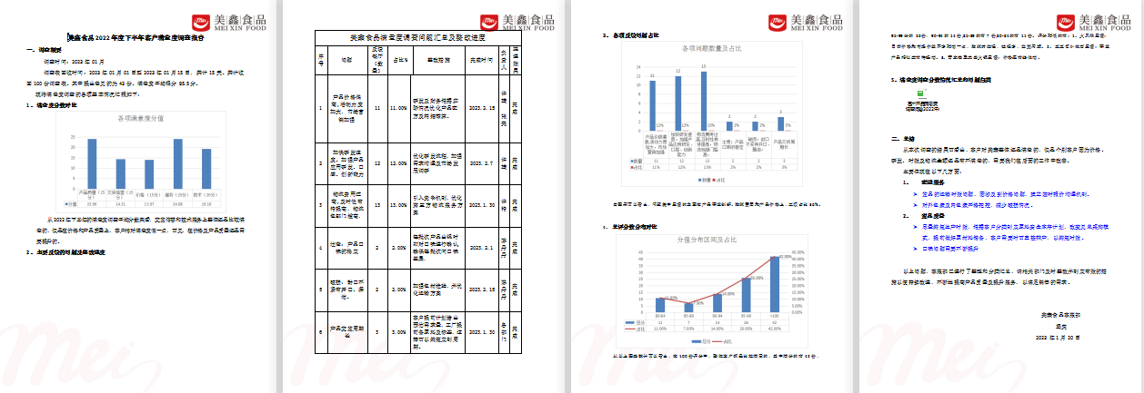 顧客滿意度調查內容包括產品(技術領先性、穩定性、包裝)、發貨(準時)、服務(快捷)、購銷合同條款、與競爭對手的比較優劣等方面。要求問卷回收率在 75%以上。按各項目進行加權平均,統計顧客提出的問題,按重要度及滿意度,編制《滿意度調查報告》,通報公司各相關部門,并要求各相關部門分別提出改善方案與時間。公司總經辦負責跟進各部門在制度、流程、人員、培訓等方面的改進進度與效果。跟蹤產品、服務質量,及時獲得顧客滿意度信息公司在加強內部改善,以提高顧客滿意度。